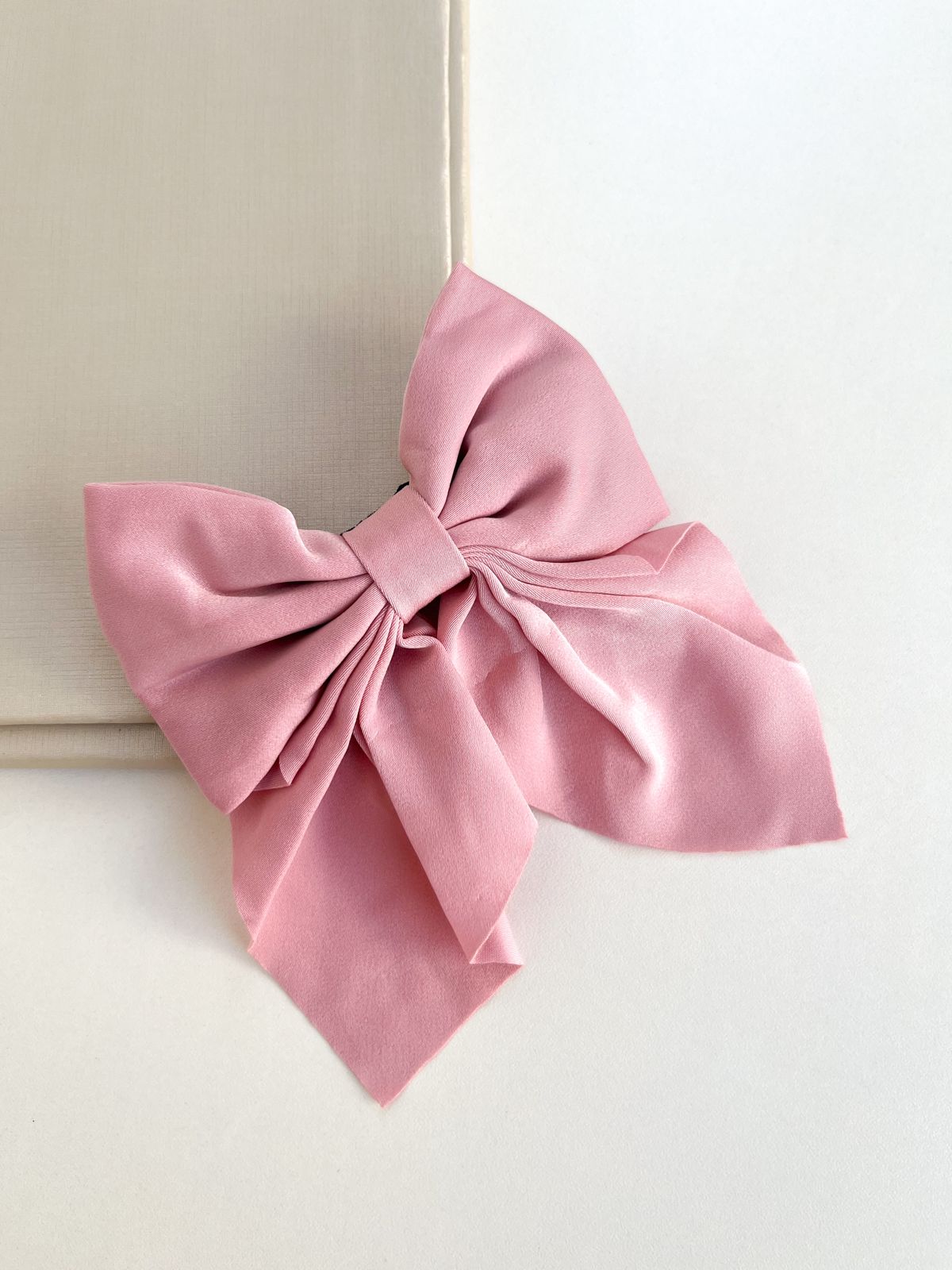 Laço Pequeno em Tecido na Cor Rosa Bebe com Fecho em Bico de Pato