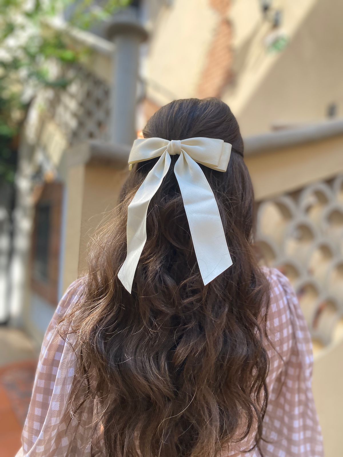 Laço em Cetim na Cor Creme com Fecho na presilha click
