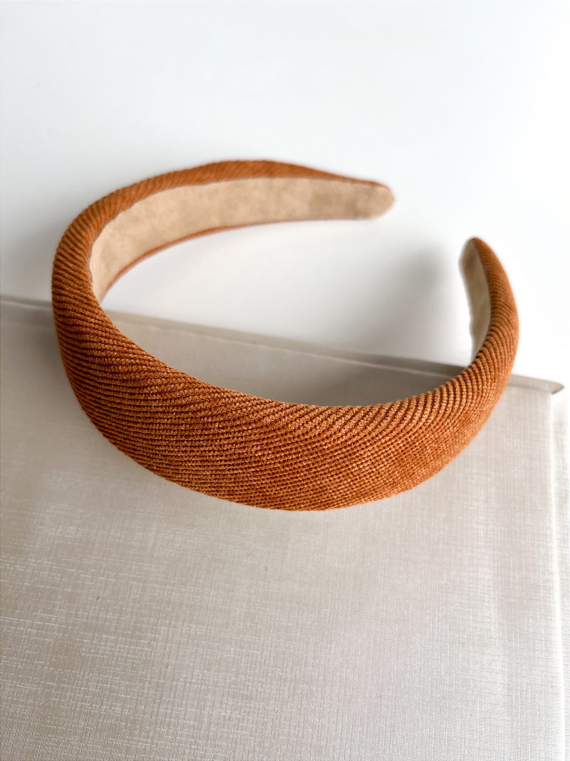 Tiara em Tecido Marrom com Forro Interno em Suede